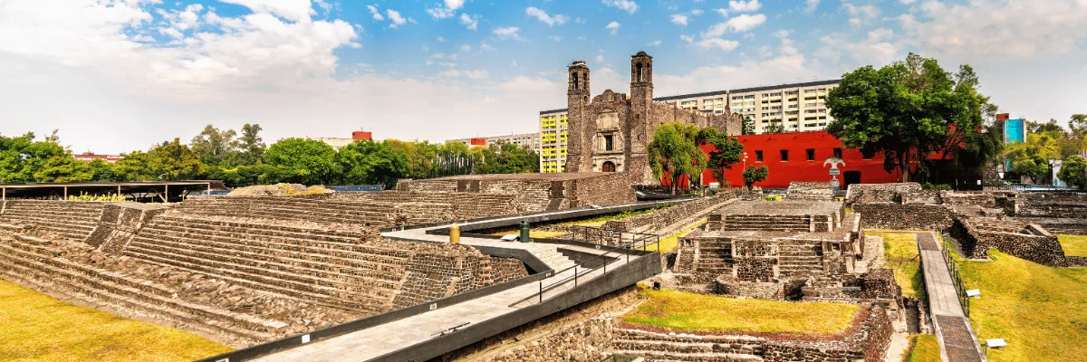 Here, at the Plaza de las Tres Culturas, you can see Aztec, colonial, and modern history all in one place: